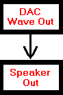 A typical audio card may have some other components. For example, it may have a built-in sound module (ie, synth) capable of playing MIDI data. The audio output of this component would typically be piped to the speaker output just like the DAC. So, our block diagram now looks like so: