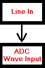 Finally, let's assume that this audio card has a Line In component so that the audio signal from an external tape deck or musical instrument or external hardware mixer can be attached to this jack and digitized. This component is piped to the ADC component just like the Microphone Input component. Here is our finished block diagram which contains 7 components (and 5 signal flows -- the arrows that interconnect them):